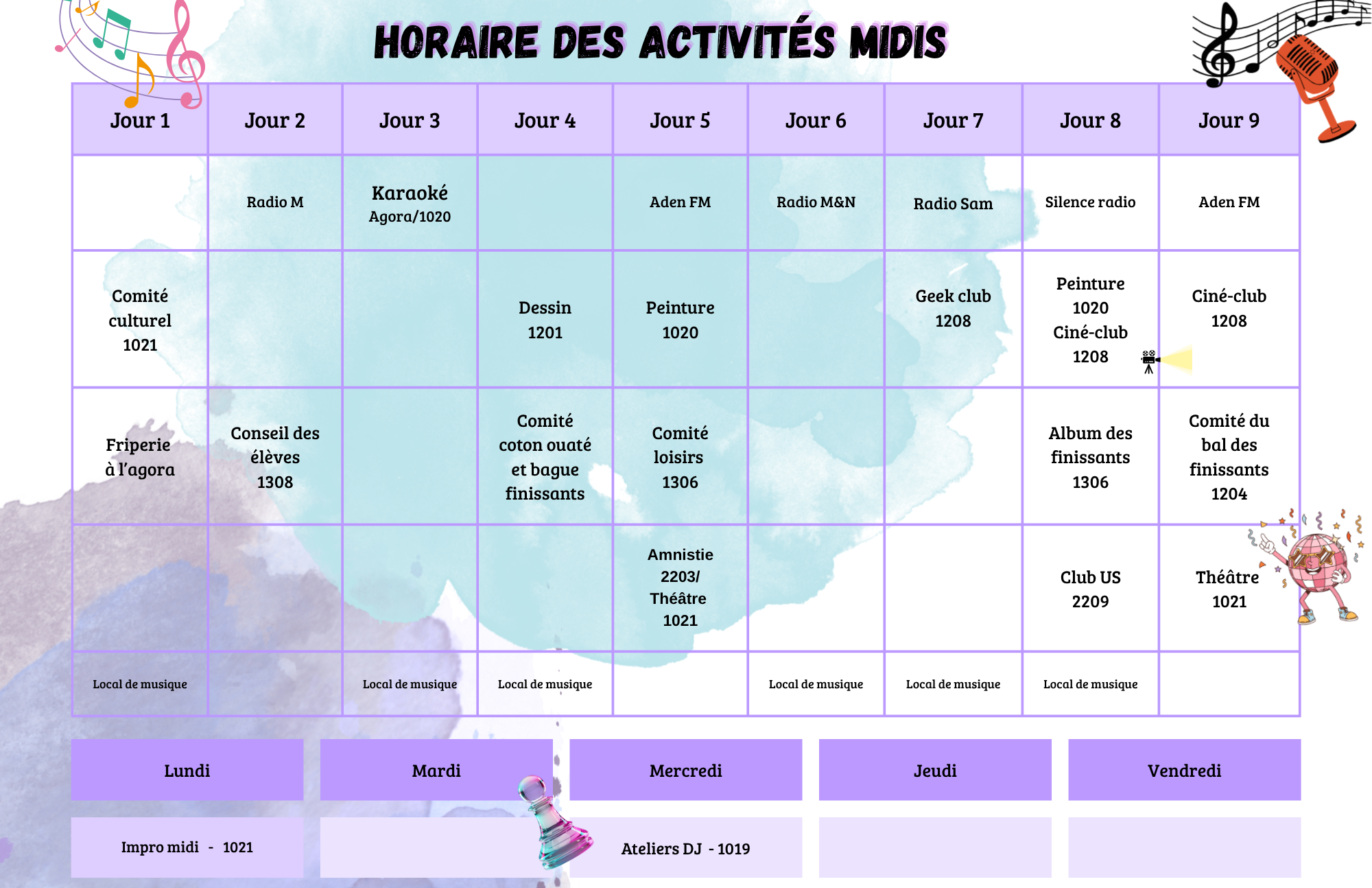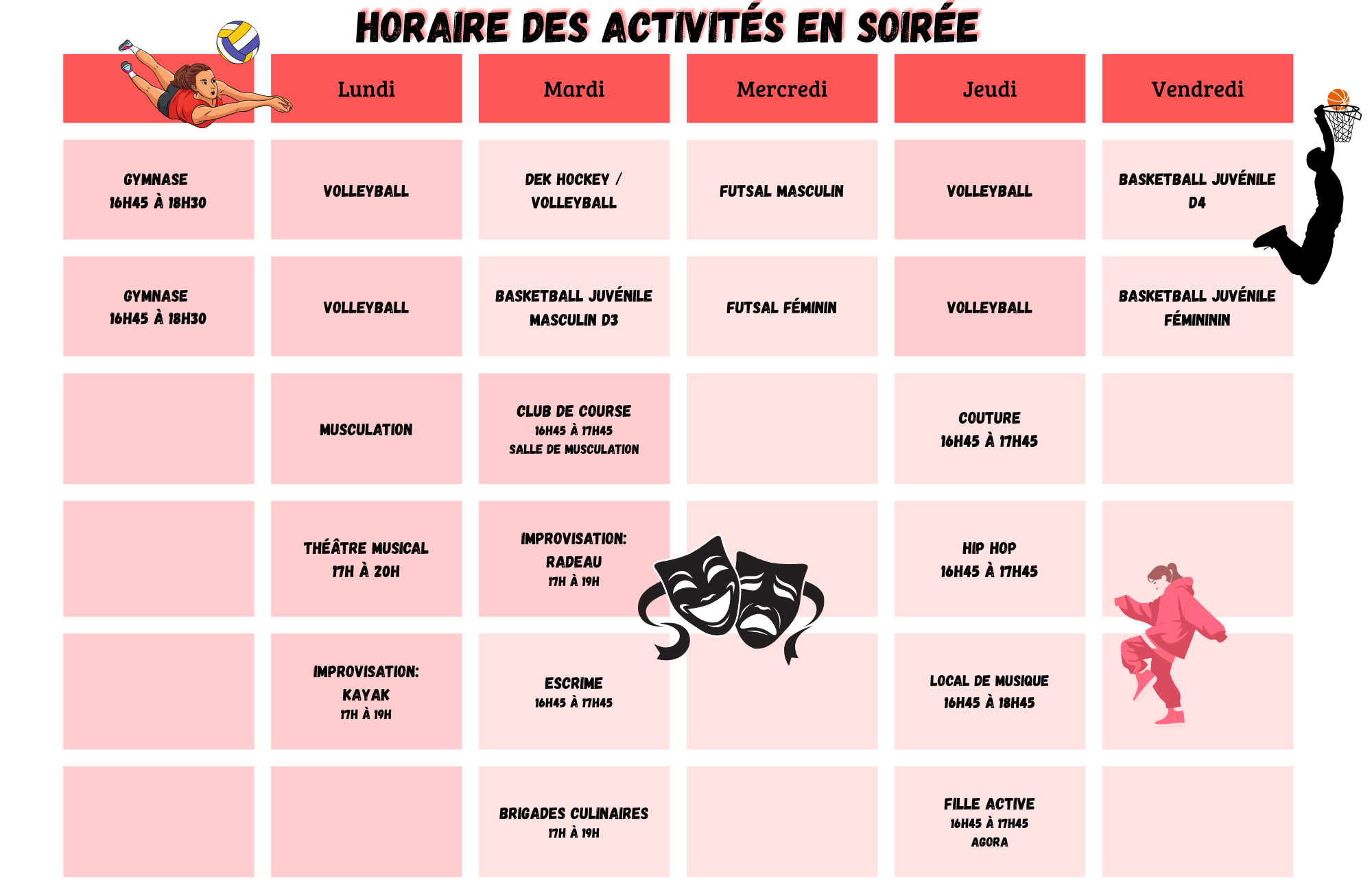 Que ce soit pour une activité du midi, une activité pour les finissants ou même pour des activités socioculturelles et sportives, sachez que notre personnel en loisirs est disponible tous les jours.