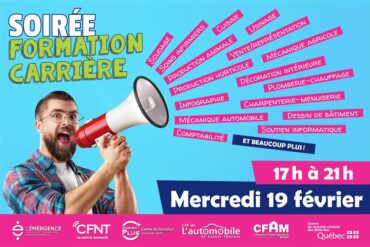 📢 Parents et élèves de secondaire 3-4-5, vous êtes invités à prendre part à la SOIRÉE FORMATION CARRIÈRE ! Venez découvrir plus de 40 programmes le mercredi 19 février au Centre de formation des Nouvelles-Technologies (75, rue Duquet à Sainte-Thérèse) de 17h à 21h. 👀 Cet événement est organisé par les 5 centres de formation […]